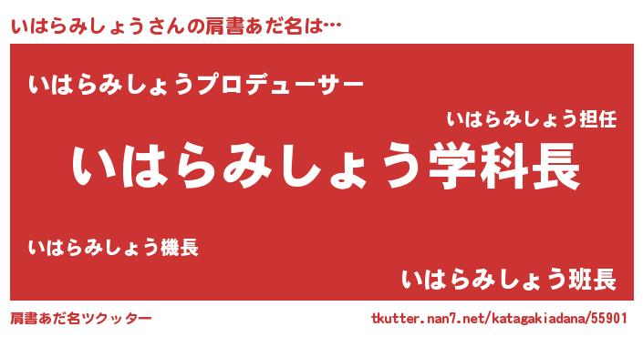 | 男性向けラノベタイトル風あだ名 | 『おまえをオタクにしてやるから、俺をいはらみしょうにしてくれ! 』 |