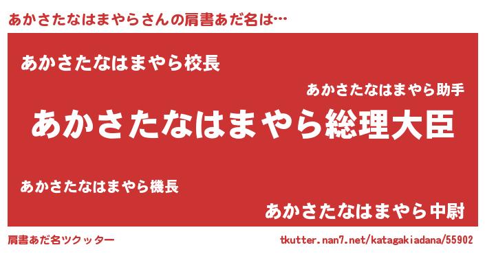 | 女子向けラノベタイトル風あだ名 | 『あかさたなはまやらの雑貨屋さん』 |