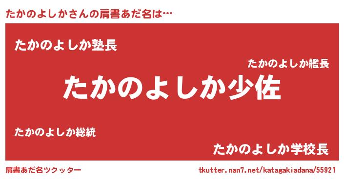 | ポケモン風あだ名 | 『タカキング』『ヒタカノヨシカ』 |