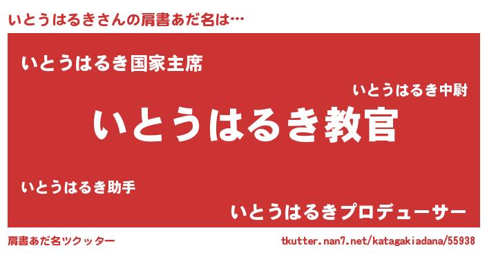 | 男性向けラノベタイトル風あだ名 | 『魔弾の王といとうはるき』 |