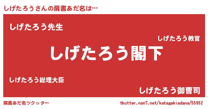 | 意味不明あだ名 | 『自称しげたろう』『永久保存しげたろう』 |