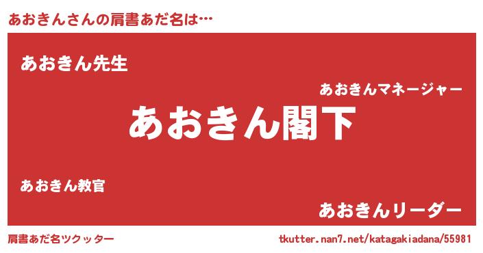 | 意味不明あだ名 | 『自称あおきん』『永久保存あおきん』 |