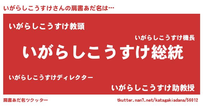 | 女子向けラノベタイトル風あだ名 | 『いがらしこうすけなんてお断りですっ。』 |