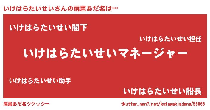 | 男性向けラノベタイトル風あだ名 | 『はたらくいけはらたいせいさま!』 |