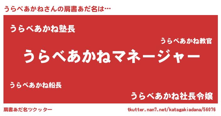| 男性向けラノベタイトル風あだ名 | 『うらべあかねに滅ぼされるだけの簡単なお仕事です』 |