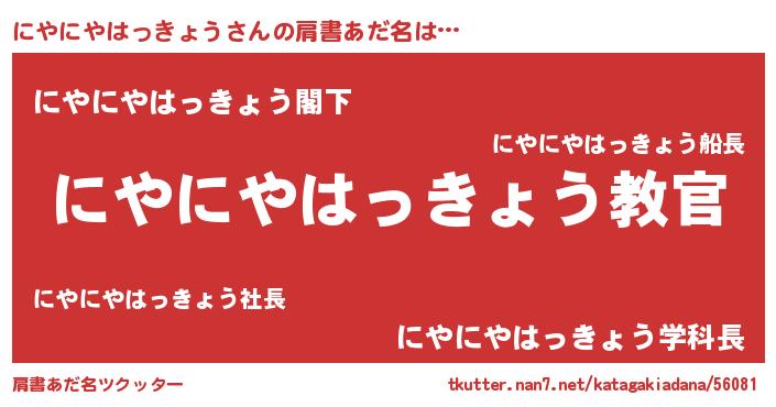 | 男性向けラノベタイトル風あだ名 | 『この素晴らしい世界ににやにやはっきょうを!』 |