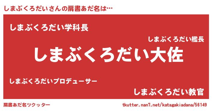 | 男性向けラノベタイトル風あだ名 | 『シマブクロダイスレイヤー』 |