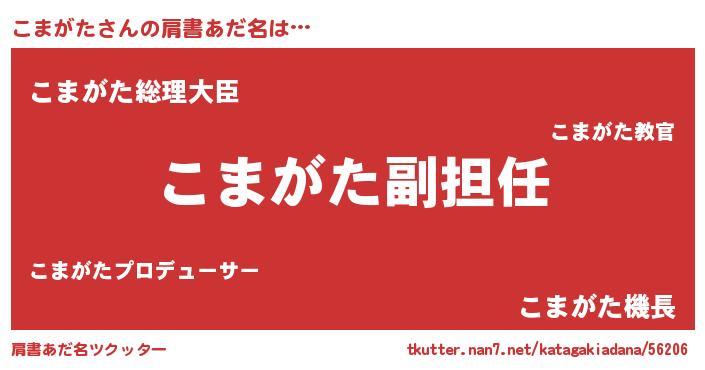 | ヘコむあだ名 | 『こまがた(震え声)』『豆乳』 |
