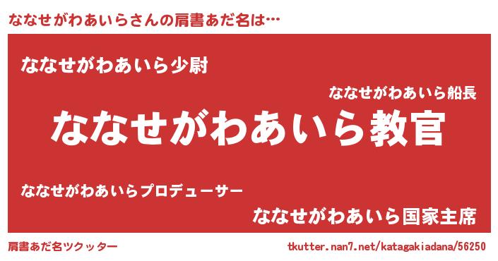 | 意味不明あだ名 | 『住所不定無職ななせがわあいら(98歳)』 |