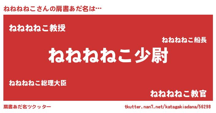 | 女子向けラノベタイトル風あだ名 | 『ねねねねこの玉の輿計画!』 |