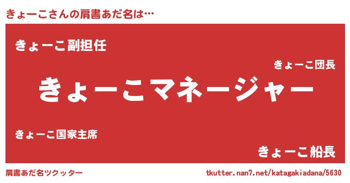 | 意味不明あだ名 | 『永久保存きょーこ』『自称きょーこ』 |