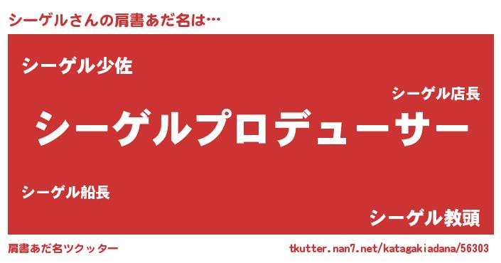 | 男性向けラノベタイトル風あだ名 | 『シーゲルに滅ぼされるだけの簡単なお仕事です』 |