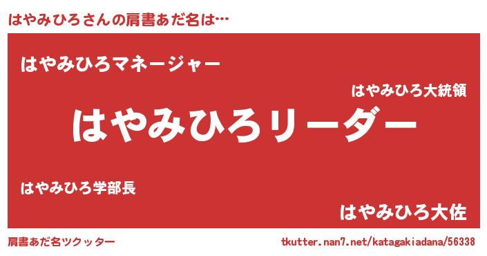 | 意味不明あだ名 | 『とにかく怪しいはやみひろ』 |