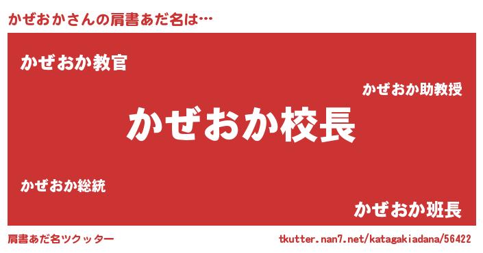 | ヘコむあだ名 | 『かぜおか(爆)』『かぜ太郎』『豆乳』 |
