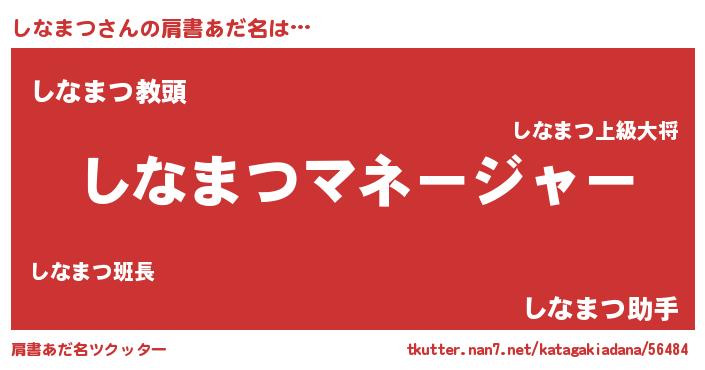 | ヘコむあだ名 | 『しなまつ(笑)』『しなを』『豆乳』 |