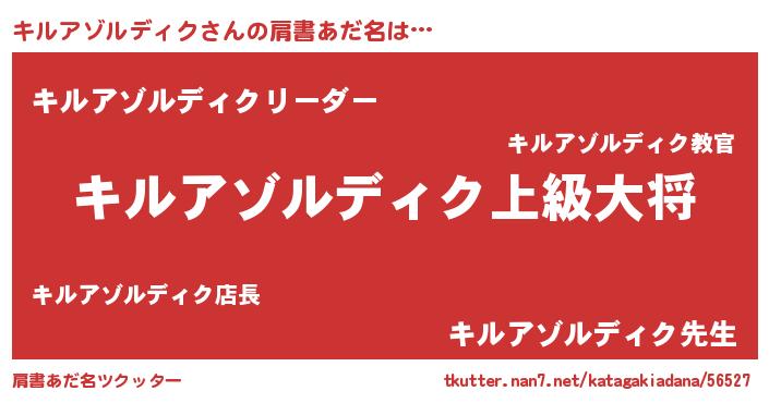 | 男性向けラノベタイトル風あだ名 | 『キルアゾルディクスレイヤー』 |