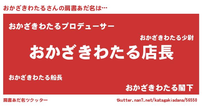 | 男性向けラノベタイトル風あだ名 | 『オカザキワタルアートオンライン』 |