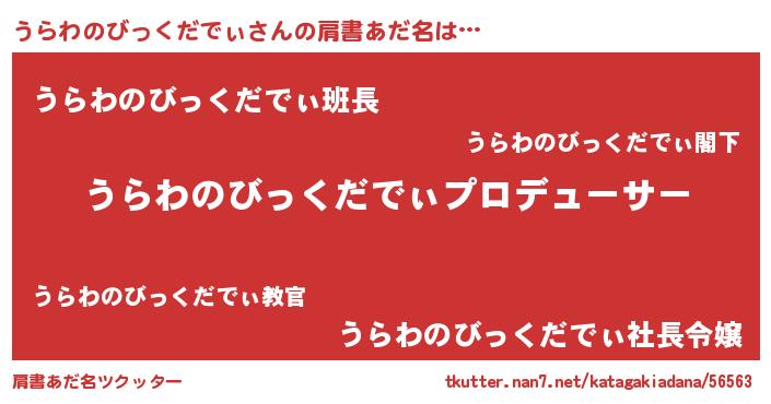 | 男性向けラノベタイトル風あだ名 | 『うらわのびっくだでぃに滅ぼされるだけの簡単なお仕事です』 |