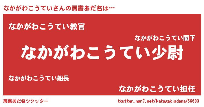 | 女子向けラノベタイトル風あだ名 | 『なかがわこうていの玉の輿計画!』 |