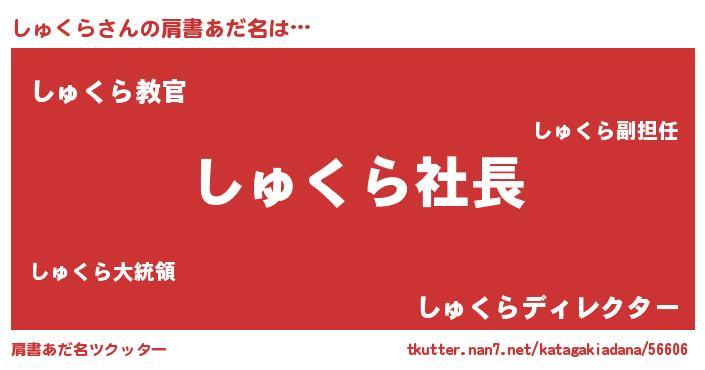 | ヘコむあだ名 | 『しゅにー』『しゅくら(笑)』『豆乳』 |