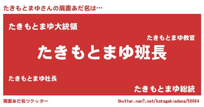 | 男性向けラノベタイトル風あだ名 | 『たきもとまゆの嫁は女の子じゃないと思った?』 |