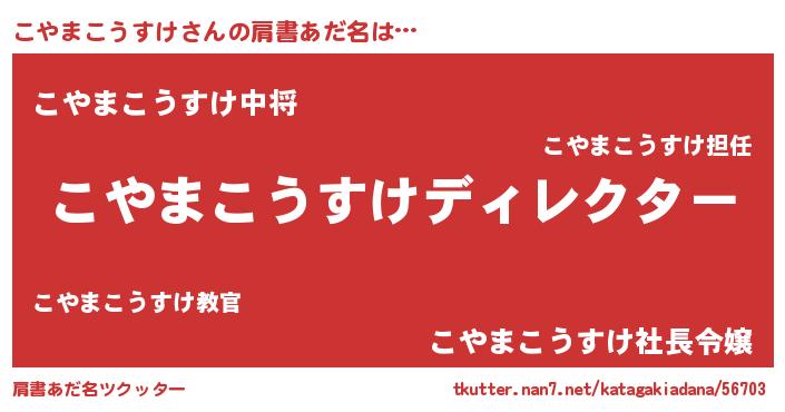 | 男性向けラノベタイトル風あだ名 | 『こやまこうすけに滅ぼされるだけの簡単なお仕事です』 |