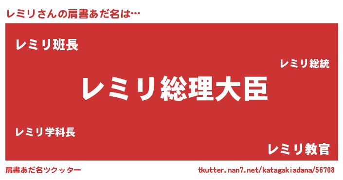 | 男性向けラノベタイトル風あだ名 | 『やはりレミリの青春ラブコメはまちがっている 』 |