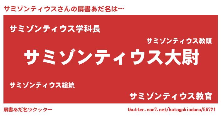 | 男性向けラノベタイトル風あだ名 | 『サミゾンティウススレイヤー』 |