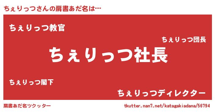 | 胡散臭い通販商品みたいなあだ名 | 『億万長者になれるブレスレット…その名も「ちぇりっつ」』 |