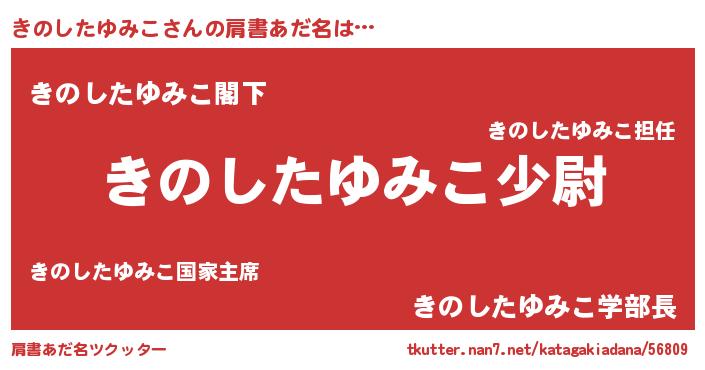 | 男性向けラノベタイトル風あだ名 | 『きのしたゆみこ~年齢イコール彼女いない歴の魔法使い~』 |