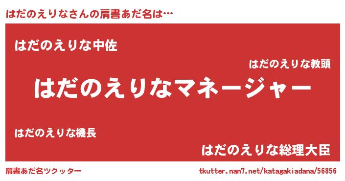 | 男性向けラノベタイトル風あだ名 | 『はたらくはだのえりなさま!』 |