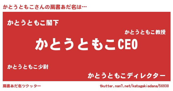 | 女子向けラノベタイトル風あだ名 | 『(仮)かとうともこのやんごとなき事情』 |