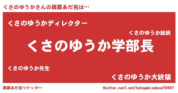 | 男性向けラノベタイトル風あだ名 | 『おまえをオタクにしてやるから、俺をくさのゆうかにしてくれ! 』 |