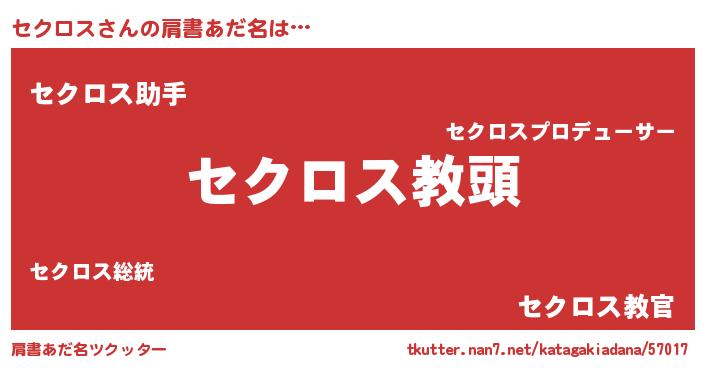 | ヒーロー風カッコイイあだ名 | 『ネオセクロス』『正義の使者セクロス』 |