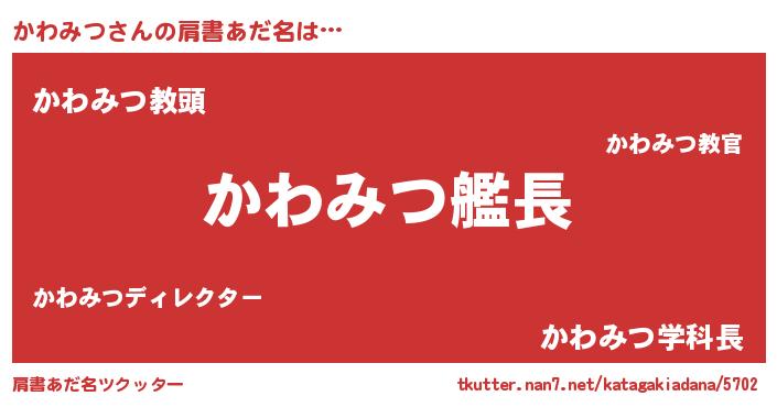 | 意味不明あだ名 | 『永久保存かわみつ』『自称かわみつ』 |