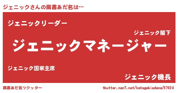 | 欧米人風あだ名 | 『アンジェラ・ジェニック』 |