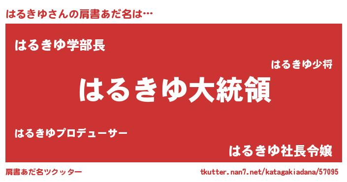 | 女子向けラノベタイトル風あだ名 | 『はるきゆの婚約者』『はるきゆ恋絵巻』 |