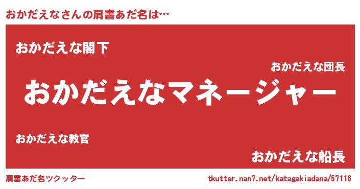 | 男性向けラノベタイトル風あだ名 | 『はたらくおかだえなさま!』 |