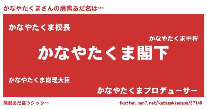 | 意味不明あだ名 | 『自称かなやたくま』 |