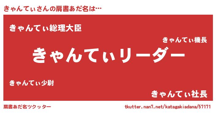 | ヘコむあだ名 | 『きゃぷりん』『豆乳』『きゃにー』 |