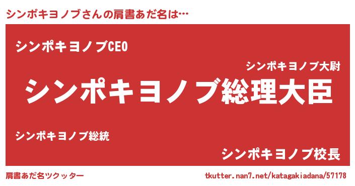 | 男性向けラノベタイトル風あだ名 | 『やはりシンポキヨノブの青春ラブコメはまちがっている 』 |