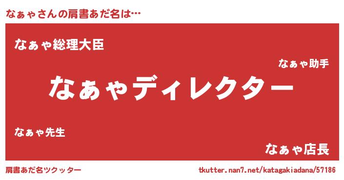 | ヒーロー風カッコイイあだ名 | 『ウルトラなぁゃマン』『スーパーナァャ』 |