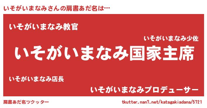 | 意味不明あだ名 | 『いそがいまなみフォーエバー』 |