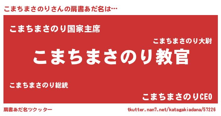 | 男性向けラノベタイトル風あだ名 | 『この素晴らしい世界にこまちまさのりを!』 |