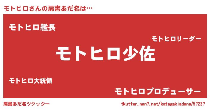 | ヒーロー風カッコイイあだ名 | 『天弓騎士モト』『ウルトラモトヒロマン』 |
