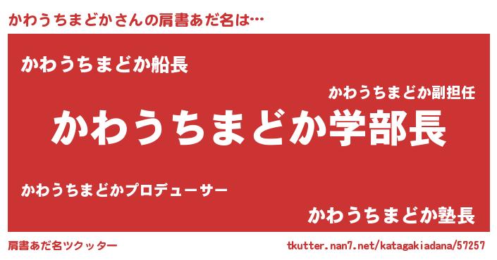 | ヘコむあだ名 | 『かわぷりん』『かわうちまどか(笑)』 |