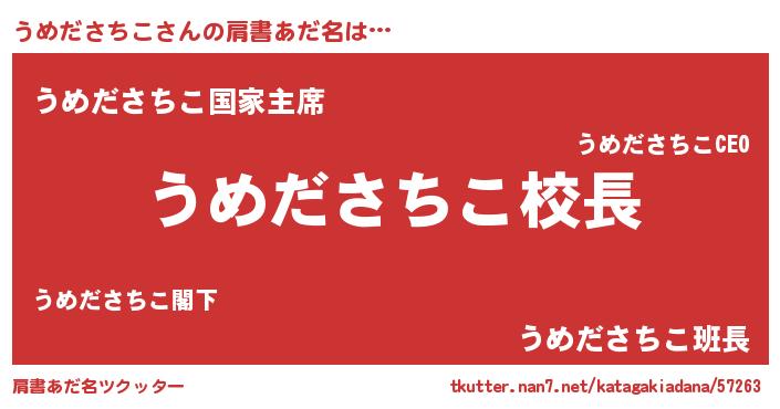 | ヒーロー風カッコイイあだ名 | 『ネオウメダサチコ』『幻影騎士ウメ』 |