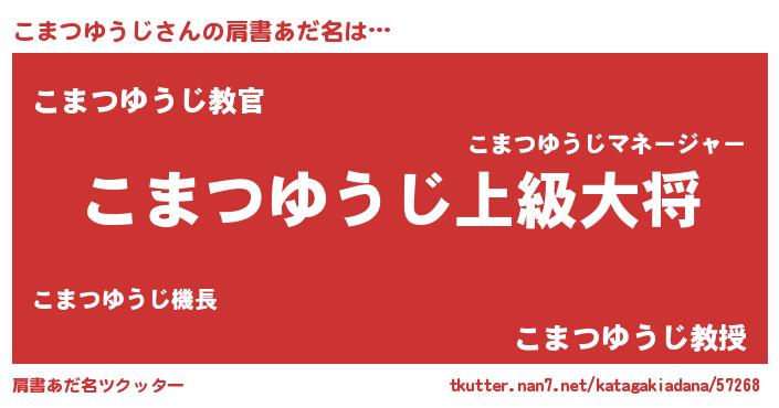 | 男性向けラノベタイトル風あだ名 | 『コマツユウジスレイヤー』 |