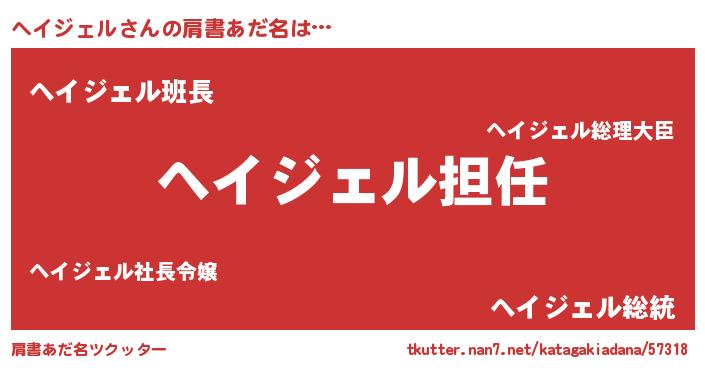 | ヘコむあだ名 | 『ヘイジェル(苦笑)』『ヘイっ子』 |