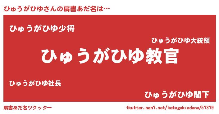| 男性向けラノベタイトル風あだ名 | 『魔弾の王とひゅうがひゆ』 |